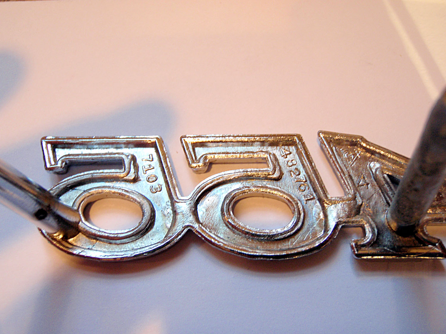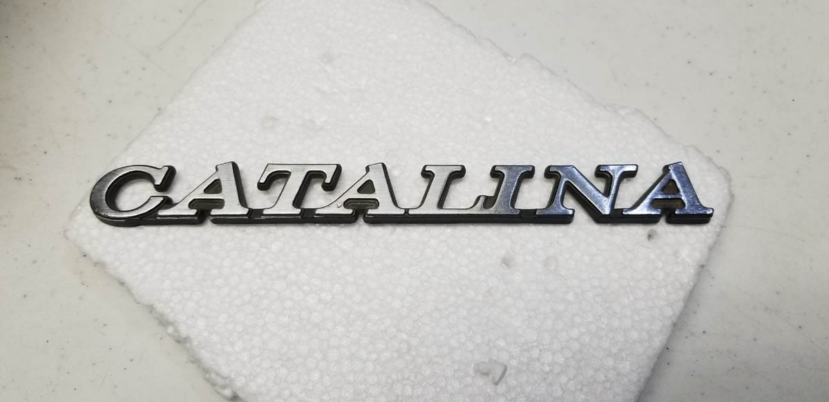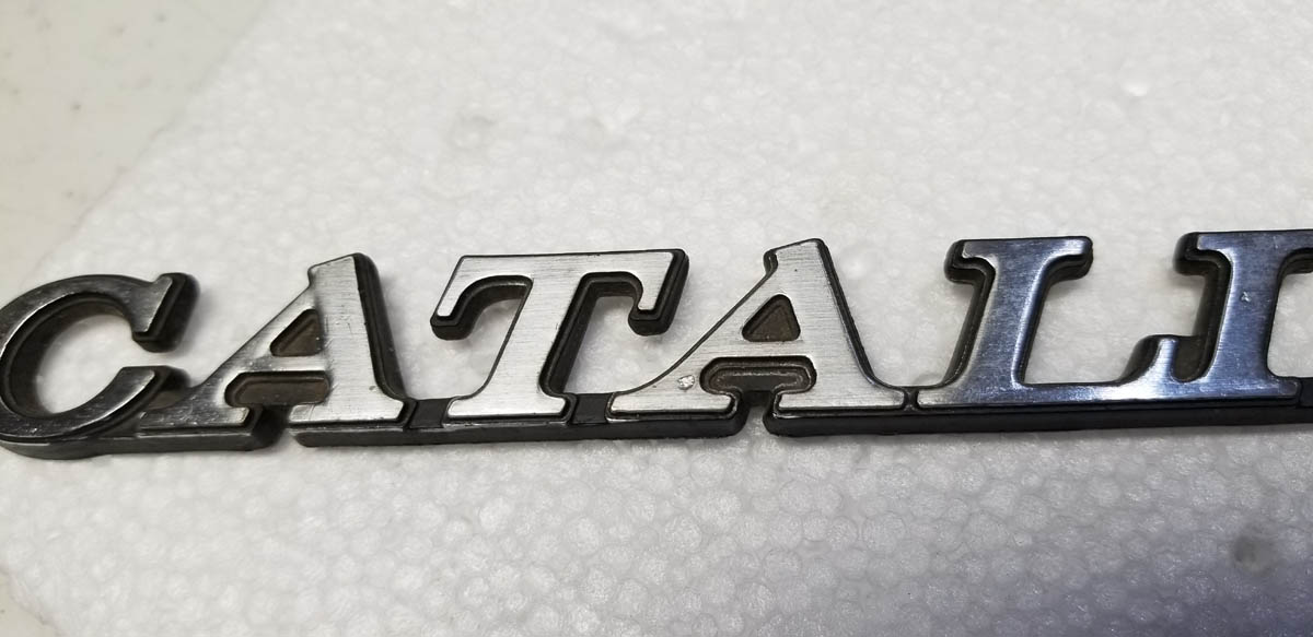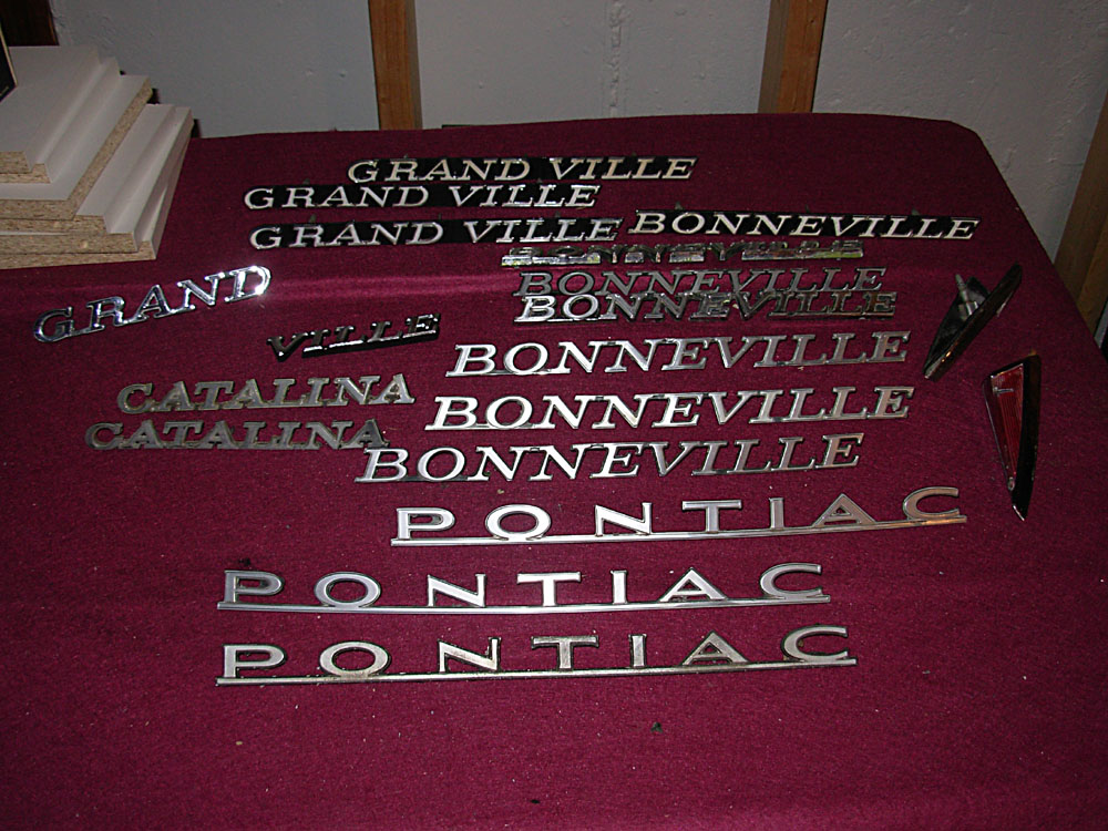 Professionally restored fender emblem nameplates, "GRAND" and "VILLE".
