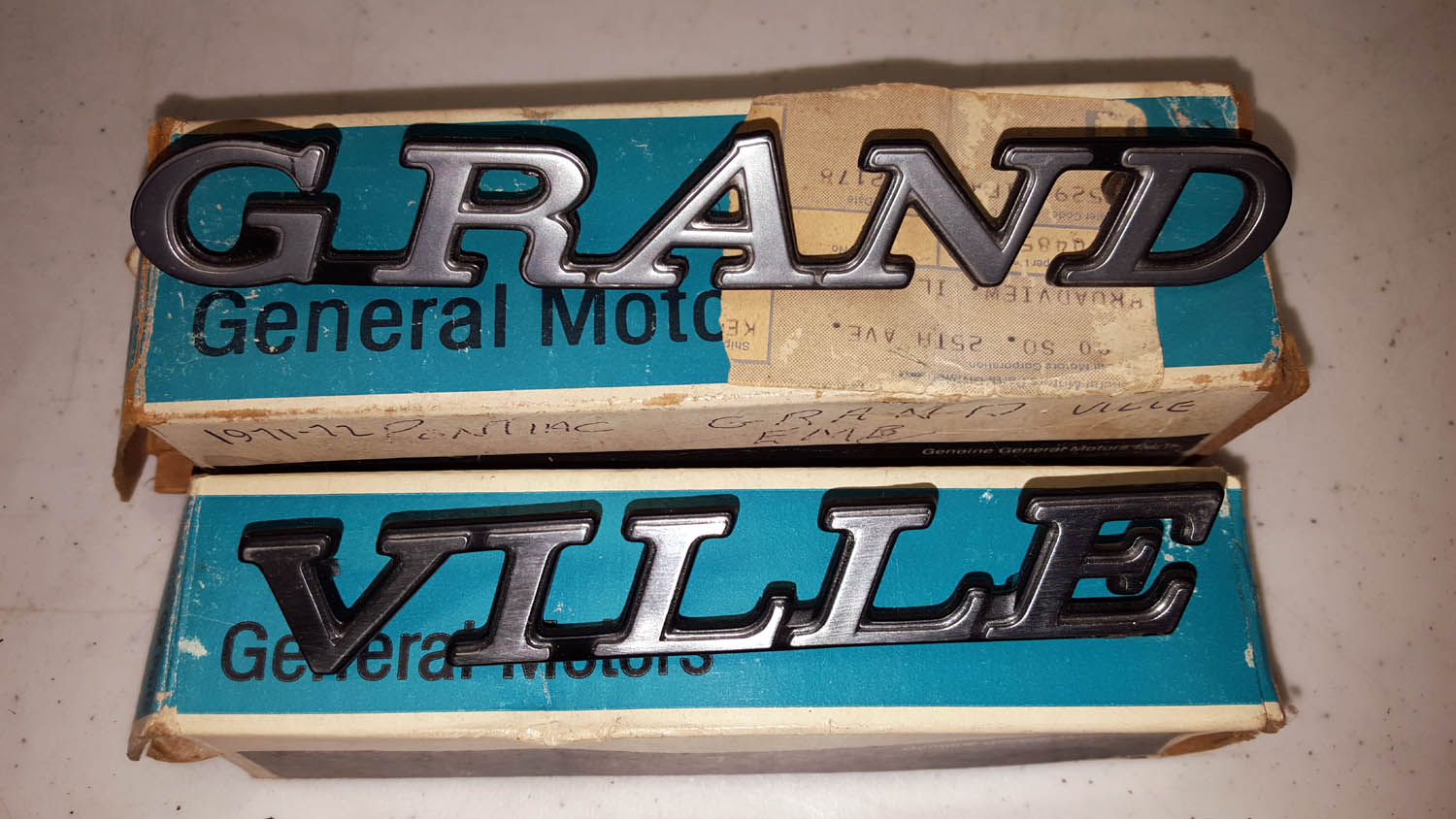 1971 - 72 NOS "GRAND" & "VILLE" Deck Lid Nameplates
