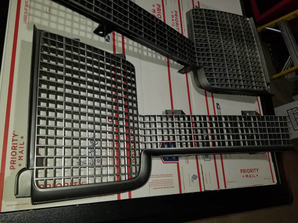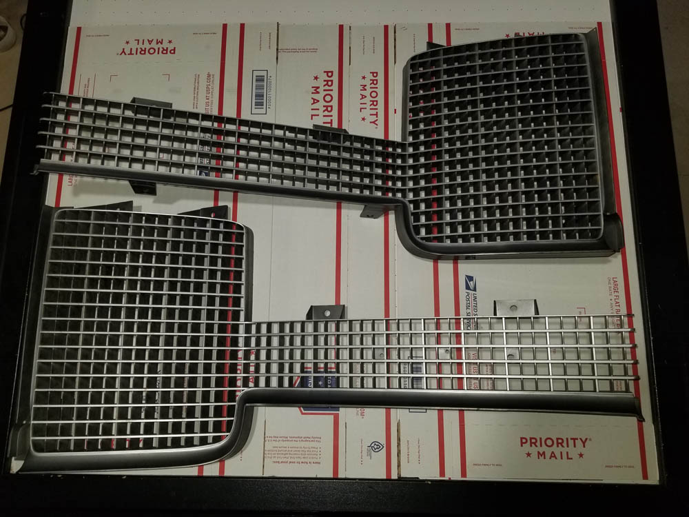 Beautiful grille with NO broken tabs or cracks. Restored and clear coated. 9 out of 10 grade on this grille! Included are “spruced-up” emblems with overall decent appearance (6 out of 10 grade). All mounting hardware included. Brackets available separately.