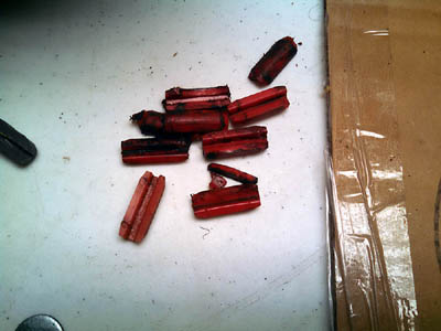 Here is the complete mess from what I removed from this particular set. Majority broken in pieces or cracked. |