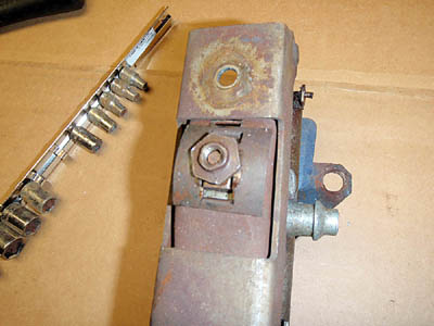 Next remove the two large actuator nuts from the top of the front and rear units. |